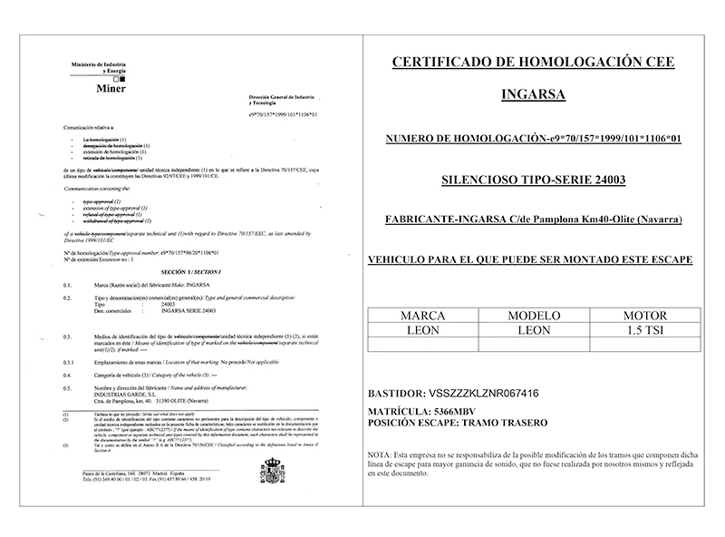 Además de la ficha técnica, el permiso de circulación y las imágenes generales del vehículo, para homologar la sustitución de tu silencioso (tubo de escape) necesitarás la siguiente documentación: