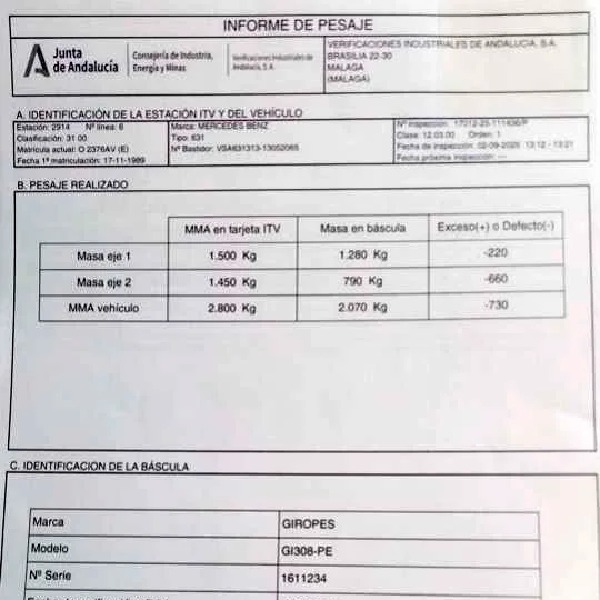 - Pesaje por ejes: sin carga, con el depósito lleno e indicando si se hace con o sin conductor.