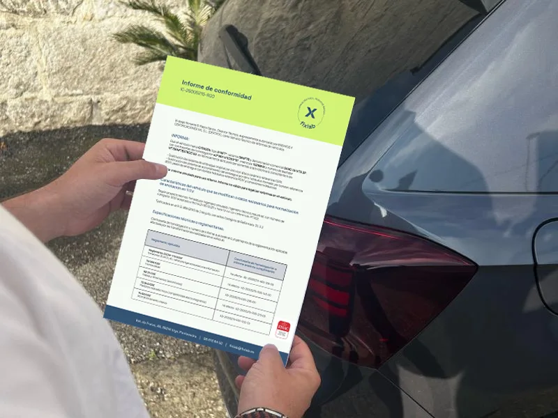 Este informe es emitido por un laboratorio o servicio técnico autorizado cuando se realizan reformas en vehículos ya matriculados. En el informe de conformidad se certifica que los cambios realizados en el vehículo se han hecho conforme a la legalidad.